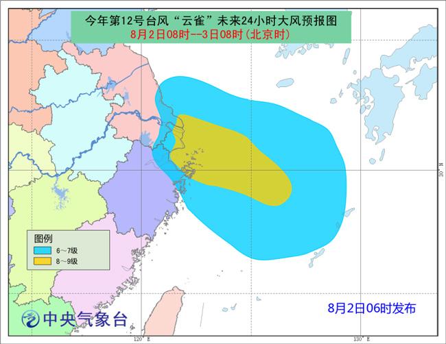 大風(fēng)預(yù)報:8月2日08時至8月3日08時,東海大部、黃海西南部將有6-7級大風(fēng),“云雀”中心經(jīng)過的東海北部的部分海域、舟山群島、杭州灣、上海沿海、長江口區(qū)、江蘇東南部沿海將有8-9級大風(fēng),陣風(fēng)可達(dá)10-11級。