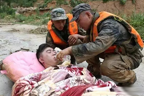 ?。?)2016年,“莫蘭蒂”臺風(fēng)后,官兵徒步深入災(zāi)區(qū),在半米深的泥石流和亂石堆中,抬著受傷人員與死神賽跑。一路八小時,戰(zhàn)士們餓著肚子,把僅有的一瓶礦泉水留給了受傷群眾。有中國軍人的地方,就有依靠。