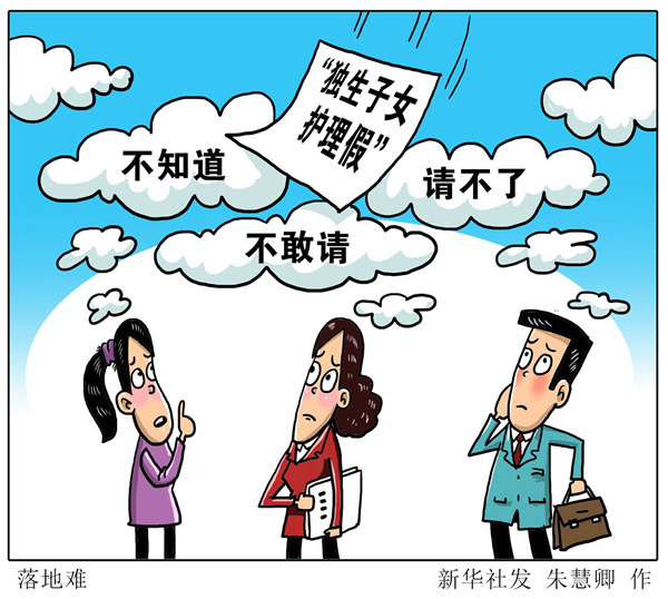 一些符合條件的獨(dú)生子女則表示“不敢請”。在福州市某民營企業(yè)工作的謝女士看來,這個(gè)假期是“機(jī)關(guān)事業(yè)單位獨(dú)生子女帶薪護(hù)理假”;鄭州市一家民營企業(yè)員工劉娟娟說,現(xiàn)在年假還有一些公休假都沒有保證,更不敢奢求獨(dú)生子女護(hù)理假,這類假期如果只是原則性的要求,估計(jì)也就是一場空,“老板不樂意,能休你也不敢休”。