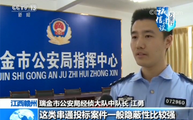 瑞金市公安局經(jīng)偵大隊中隊長 江勇:這類串通投標(biāo)案件一般隱蔽性比較強,對于這個案子來說,涉案人員眾多。而且他們都是利益獲得方容易形成攻守同盟,對我們公安機關(guān)取證有很大的困難。通過調(diào)取大量的銀行流水和該項目的相關(guān)投標(biāo)招標(biāo)資料。再通過外圍走訪,確定鐘某等人涉嫌串通投標(biāo)。