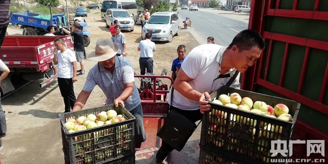 客商正在忙著把蜜桃裝到大貨車上。央廣網(wǎng)記者王晶 攝