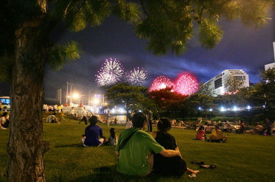2008年8月2日,北京永定門,一對情侶觀看北京奧運會開幕式預(yù)演的煙花。戴冰/攝