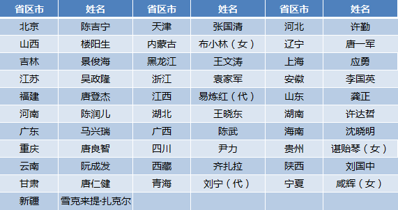 兩天內(nèi),江西、青海先后召開省級(jí)人大會(huì)議,調(diào)整省長(zhǎng):江西省委書記劉奇不再兼任江西省省長(zhǎng),易煉紅任江西省代理省長(zhǎng);青海省委書記王建軍不再兼任青海省省長(zhǎng),劉寧任青海省代理省長(zhǎng)。至此,31省區(qū)市省級(jí)政府“一把手”全部就位。其中,有3名女性領(lǐng)導(dǎo),分別為內(nèi)蒙古自治區(qū)主席布小林、貴州省省長(zhǎng)諶貽琴、寧夏回族自治區(qū)主席咸輝。