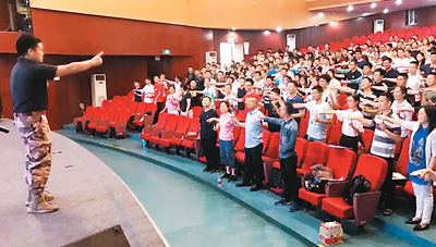 2018“平安留學(xué)”行前培訓(xùn)在貴州、成都等地舉行。圖為西南交通大學(xué)培訓(xùn)會現(xiàn)場,學(xué)生和教官在進(jìn)行互動。出國留學(xué)行前培訓(xùn)微信公眾號供圖