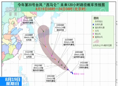 今年第20號(hào)臺(tái)風(fēng)“西馬侖”也于昨晚在西北太平洋洋面生成,預(yù)計(jì)“西馬侖”將向西北方向移動(dòng),最強(qiáng)可達(dá)臺(tái)風(fēng)級(jí)到強(qiáng)臺(tái)風(fēng)級(jí),未來“西馬侖”對(duì)我國海區(qū)無影響。