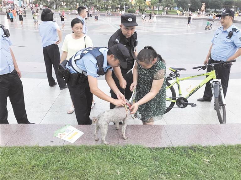 傍晚時,蒲江縣世紀廣場很是熱鬧,是市民們飯后休閑娛樂散步的集中地,其中也不乏帶著愛犬出來散步的市民。蒲江縣公安局巡防大隊民警走上街頭,現(xiàn)場對沒有為愛犬套上牽引繩的市民進行勸導并免費發(fā)放牽引繩。面對民警的勸導和發(fā)放牽引繩的執(zhí)法方式,市民們紛紛點贊,“人性化的執(zhí)法方式在宣傳文明養(yǎng)犬重要性的同時,也讓市民們更易接受,從實際出發(fā)緩和了矛盾,值得推廣!”