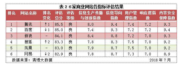 商業(yè)網(wǎng)站創(chuàng)新傳播成效凸顯,平臺內部監(jiān)管自律意識亟待加強。6家商業(yè)網(wǎng)站7月評估等級均為良好,總評分環(huán)比上升1.9%,信息生產(chǎn)與創(chuàng)新傳播指數(shù)、用戶管理指數(shù)也分別提高1.3%、1.6%。騰訊、百度、新浪在轉載中央媒體時政新聞、社評時論方面主動積極,信息導向能力優(yōu)異,總分排名分列前三。