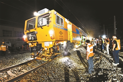 前天凌晨4點(diǎn)40分,經(jīng)過(guò)中鐵六局北京鐵建公司1600 余名參戰(zhàn)人員共同努力,歷時(shí)4小時(shí)20分施工的豐臺(tái)站改建工程京滬線過(guò)渡施工完成,這也標(biāo)志著豐臺(tái)站改建第一步過(guò)渡施工順利完成,為豐臺(tái)站改建施工的全面展開(kāi)創(chuàng)造了有利條件。