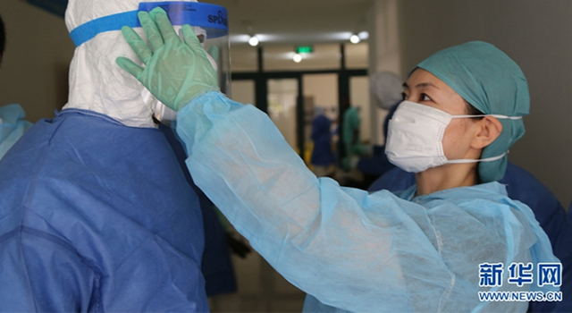 當(dāng)時(shí)有位年輕女重癥患者持續(xù)高燒,血管萎縮,很難扎針輸液。王新華隔著手套也根本感覺不到血管在哪。情急之下,王新華決定摘掉手套為患者扎針。身邊的同事比她還緊張:“這要是扎到手,就完了!”然而王新華沉著冷靜地握住患者的手,用摘掉手套的手仔細(xì)尋找著血管,而后屏住呼吸一針下去,“一針見血”,抗病毒藥物緩緩輸入患者體內(nèi),女患者病情逐漸穩(wěn)定。