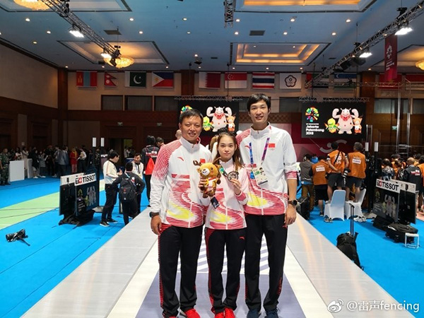 雷聲與獲得亞運會女花個人銀牌的傅依婷。