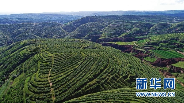 寧夏彭陽縣金雞坪梯田公園(7月16日無人機(jī)拍攝)。 新華社記者 王鵬 攝