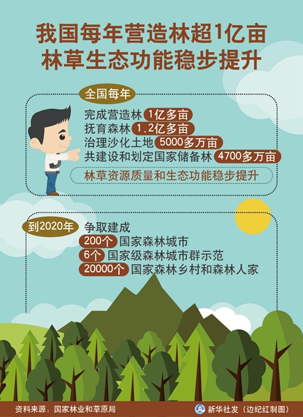 圖表:我國(guó)每年?duì)I造林超1億畝 林草生態(tài)功能穩(wěn)步提升 新華社發(fā) 邊紀(jì)紅 制圖