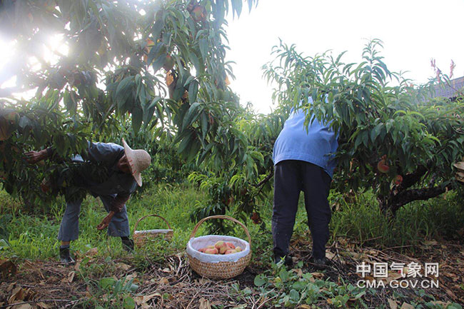 7月20日,為應(yīng)對(duì)臺(tái)風(fēng)“安比”,上海市金山區(qū)農(nóng)業(yè)部門(mén)組織農(nóng)戶(hù)搶收蟠桃和葡萄。顧秀龍 供圖