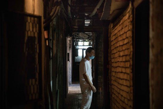 8月28日,天津市,來自山東的茂升在租住的居民樓道里乘涼。為了給妻子玉娟治療白血病,他們在與中國醫(yī)學科學院血液病醫(yī)院一墻之隔的海光新村租下一間臥室,房間悶熱潮濕,每月房費1100元,電費自理。這兩棟小樓里住著大約30戶居民,不少是跟他們一樣來津求醫(yī)的患者和家屬。視覺中國供圖