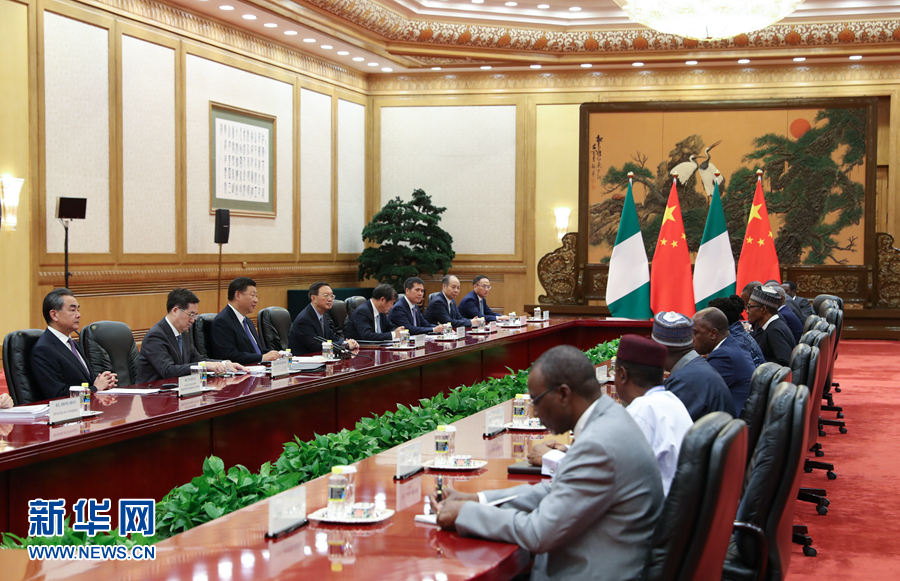 習(xí)近平強調(diào),在中非雙方共同努力下,中非合作論壇北京峰會成功閉幕,中非全面戰(zhàn)略合作伙伴關(guān)系的內(nèi)涵進(jìn)一步充實豐富,成為中非團結(jié)合作的一次歷史性盛會。尼日利亞是非洲大國,也是中國在非洲重要的合作伙伴,我高度重視中尼關(guān)系發(fā)展。兩國關(guān)系正處于歷史上最好時期。中方贊賞尼日利亞政府堅持一個中國政策,愿繼續(xù)同尼方在涉及彼此核心利益和重大關(guān)切問題上相互理解和支持。中方歡迎尼方參與“一帶一路”建設(shè),愿同尼方深化基礎(chǔ)設(shè)施建設(shè)、農(nóng)業(yè)、產(chǎn)能等領(lǐng)域合作,密切人文交流,助力尼日利亞經(jīng)濟社會發(fā)展,將中尼合作打造成中非合作的典范。