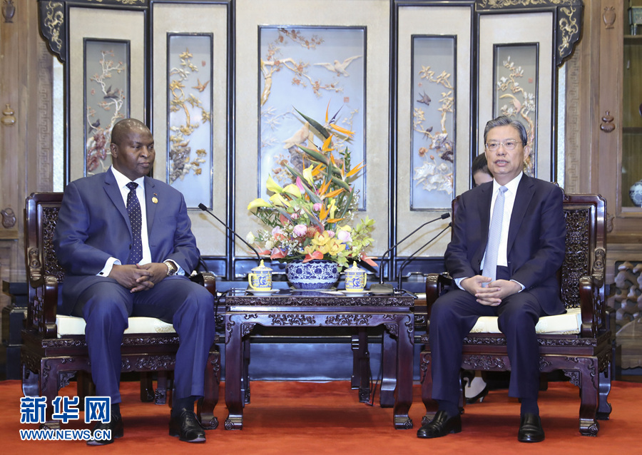 9月6日,中共中央政治局常委、中央紀委書記趙樂際在北京釣魚臺國賓館會見中非總統(tǒng)圖瓦德拉。 新華社記者 丁林 攝