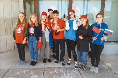 在中心主樓前的廣場上,俄羅斯孩子們穿著民族服飾、拿著各種樂器,載歌載舞,表達對中國朋友的歡迎。