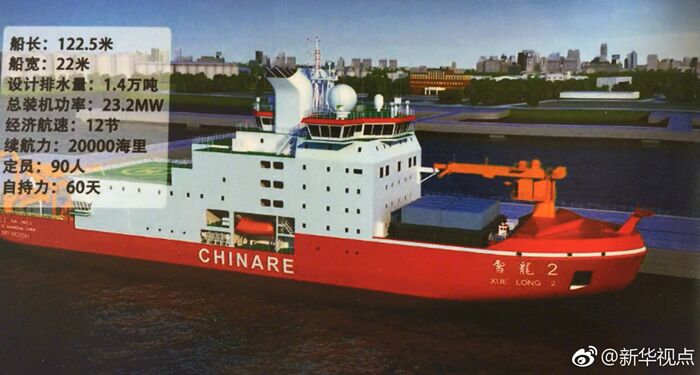 “雪龍2”號建造工程由自然資源部所屬中國極地研究中心組織實施,中國船舶工業(yè)集團第七〇八研究所設計、江南造船(集團)有限責任公司承擔建造,是一艘滿足無限航區(qū)要求、具備全球航行能力,能夠在極區(qū)大洋安全航行、具備國際先進水平的極地科學考察破冰船。