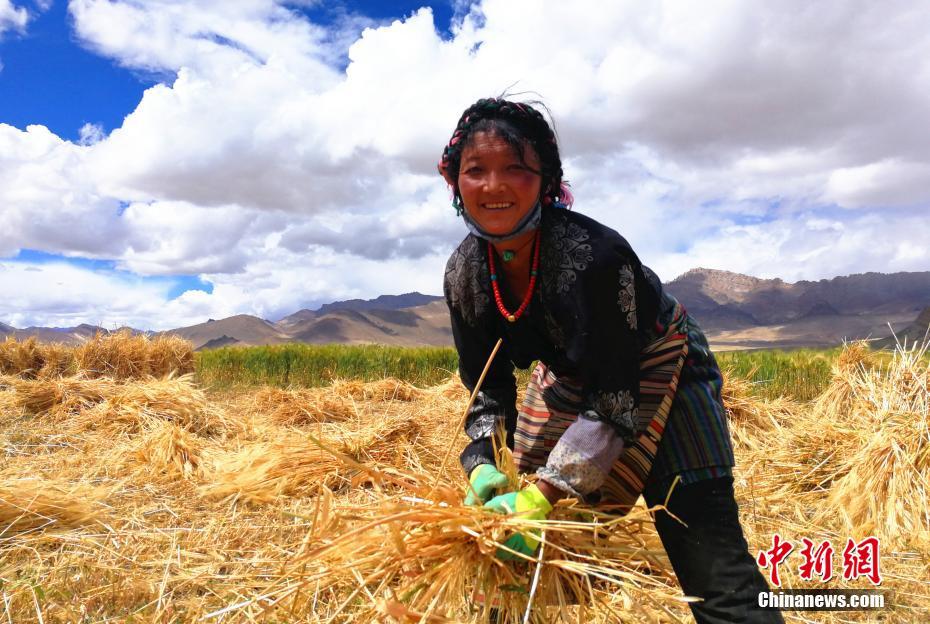 青稞作為青藏高原特有的糧食作物,是西藏種植面積最大、產(chǎn)量占糧食作物比重最高的農作物。進入9月,西藏也將迎來首個“中國農民豐收節(jié)”,2018年,西藏青稞的總種植面積將增至211萬畝,產(chǎn)量將突破80萬噸。圖為9月12日,日喀則市定日縣扎果鄉(xiāng)的農牧民次仁曲珍在地里收青稞。 中新社記者 趙延 攝?