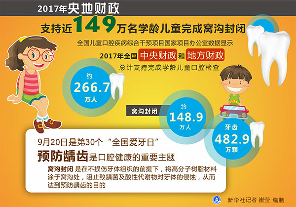 新華社北京9月18日電(記者陳聰)記者從全國(guó)兒童口腔疾病綜合干預(yù)項(xiàng)目國(guó)家項(xiàng)目辦公室了解到,2017年在中央和地方財(cái)政支持下,共有約149萬(wàn)名7-9歲兒童從窩溝封閉項(xiàng)目服務(wù)中獲益,這些兒童齲齒發(fā)生得到了有效預(yù)防。