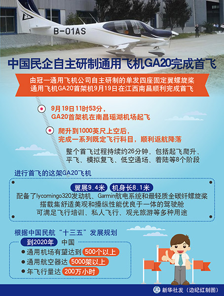 圖表:中國民企自主研制通用飛機GA20完成首飛 新華社發(fā) 邊紀(jì)紅 制圖