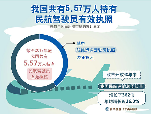 圖表:我國共有5.57萬人持有民航駕駛員有效執(zhí)照 新華社發(fā) 朱禹 制圖