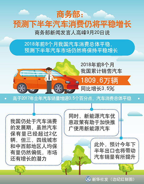 圖表:商務(wù)部:預(yù)測下半年汽車消費(fèi)仍將平穩(wěn)增長 新華社發(fā) 邊紀(jì)紅 制圖