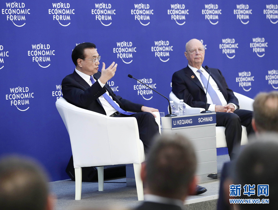 李克強(qiáng)就中國金融開放、知識產(chǎn)權(quán)保護(hù)、減稅降費(fèi)、創(chuàng)新創(chuàng)業(yè)、世界貿(mào)易體制改革等問題回答了提問。世界經(jīng)濟(jì)論壇主席施瓦布主持對話會。來自中國、美國、歐洲、日本等國和地區(qū)200余名代表出席。