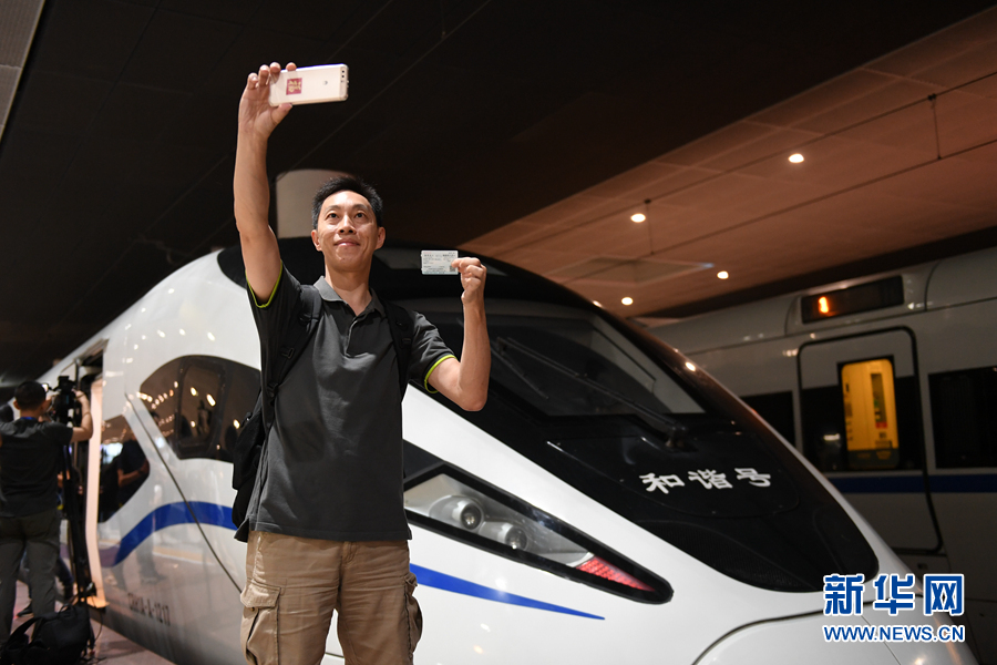 ??? 9月23日,搭乘G5711次高鐵列車前往香港西九龍站的乘客在深圳北站拍照留念。 當(dāng)日6時(shí)44分,G5711次高鐵列車從深圳北站開往香港西九龍站,標(biāo)志著廣深港高鐵全線開通,香港段正式投入運(yùn)營。 新華社記者毛思倩攝