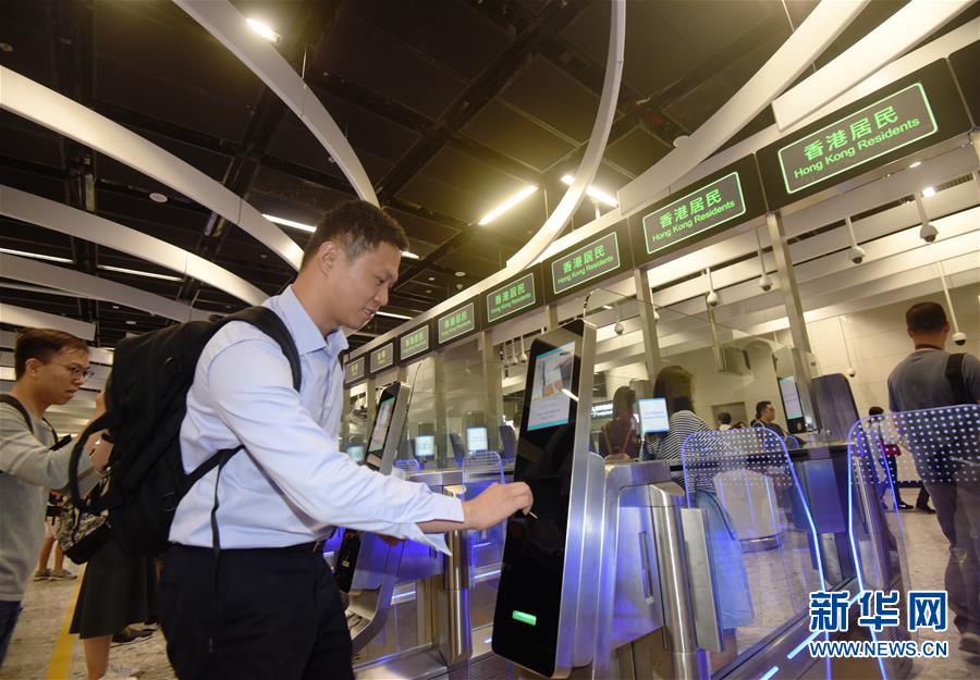 9月23日,在香港西九龍站,乘客在使用自動閘機辦理離港通關。新華社發(fā)(王申 攝)