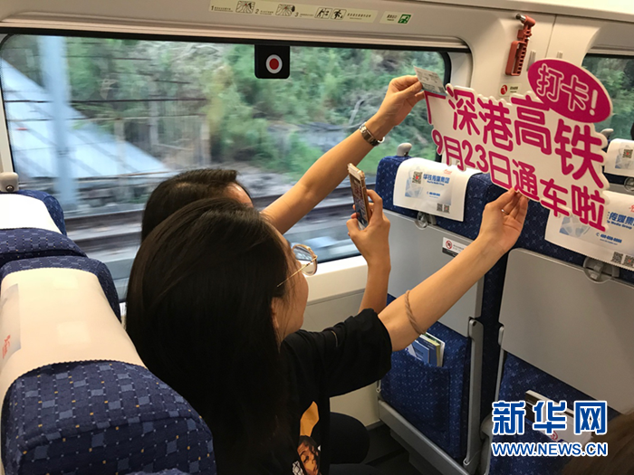 新華網(wǎng)香港9月23日電(韓家慧)廣深港高鐵香港段今日正式通車運營,正值中秋假期,不少游客前來“打卡”,體驗全新的跨境旅程。