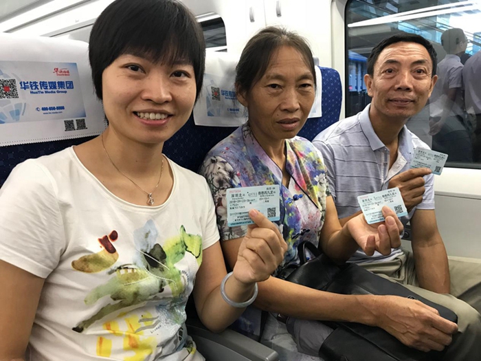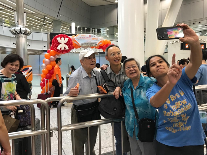 香港西九龍站, 80多歲家住深圳的黃奶奶送老伴和兒子去香港會見老朋友,“他們很多小時候的同學在香港,多年沒見了,今天通了高鐵,十幾分鐘就過來了?!?/p>