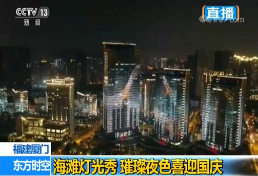 廈門夜景最絢麗的地方,這里的二十幾棟大樓,每天晚上都會變身燈光秀的舞臺。不過國慶期間和平日還是有所不同,為慶祝國慶進行了特別的設計和修改。