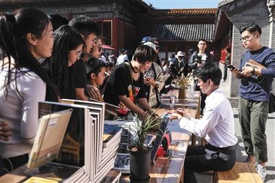 10月2日,故宮鐘表修復(fù)師王津在簽名售書。《我在故宮修文物》熱播后,氣度儒雅的鐘表修復(fù)師王津被網(wǎng)友“晉封”為“故宮男神”。新京報(bào)記者 浦峰 攝