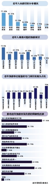 針對(duì)老年旅游市場(chǎng)目前存在的不足,報(bào)告提出,應(yīng)系統(tǒng)開(kāi)發(fā)老年旅游市場(chǎng),培育和推廣老年旅游服務(wù)優(yōu)質(zhì)產(chǎn)品,加強(qiáng)對(duì)老年旅游接待工作的規(guī)范和管理,完善和優(yōu)化老年旅游服務(wù)標(biāo)準(zhǔn),提升老年旅游服務(wù)質(zhì)量和服務(wù)接待水平。
