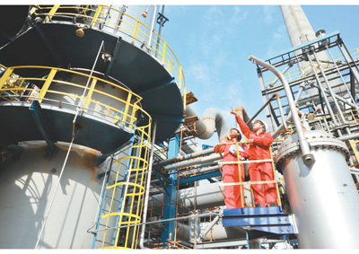 不斷追求綠色化,將排放濃度降至最低,企業(yè)這樣的環(huán)境行為理應(yīng)得到認(rèn)可和鼓勵(lì)。圖為中國石化西南油氣分公司元壩凈化廠工作人員在檢查排放治理設(shè)備。