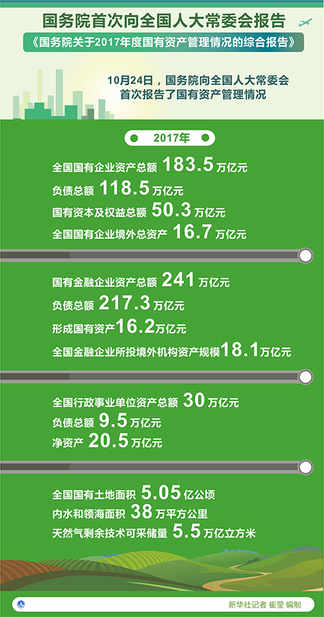 圖表:國務(wù)院首次向全國人大常委會報告《國務(wù)院關(guān)于2017年度國有資產(chǎn)管理情況的綜合報告》 新華社記者 崔瑩 編制