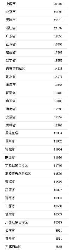 前三季度31省區(qū)市人均可支配收入。來(lái)自國(guó)家統(tǒng)計(jì)局