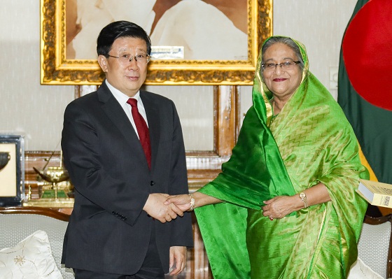 趙克志首先轉達了習近平主席和李克強總理對哈西娜總理的親切問候。趙克志指出,習近平主席兩年前對孟加拉國進行了歷史性訪問,與哈西娜總理一致決定將中孟關系提升為戰(zhàn)略合作伙伴關系,開啟了中孟友好新篇章。中孟是世代友好的好鄰居和共同發(fā)展的好伙伴。中方愿同孟方一道,認真落實兩國領導人重要共識,加強發(fā)展戰(zhàn)略對接,拓展各領域交流合作,共同推進“一帶一路”建設,深化在反恐、打擊網(wǎng)絡犯罪、打擊跨國犯罪和重大項目安保等方面的務實合作,不斷充實中孟戰(zhàn)略合作伙伴關系內涵,更好地造福兩國和兩國人民。