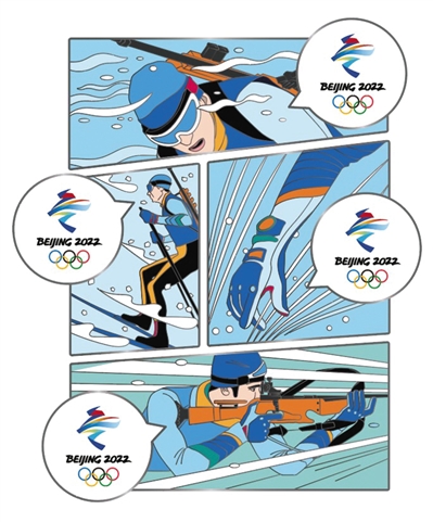 入圍作品之一,含有漫畫(huà)元素的冬奧會(huì)拼圖徽章。