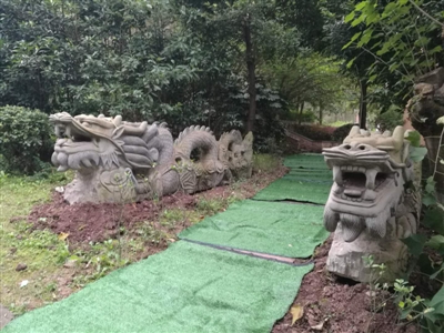 11月5日上午,記者在瑞豐公館小區(qū)看到,兩條巨龍還安放在8號樓下面的過道邊,石像立在綠地的一棵樹下。一位綠化工人介紹,龍還沒搬進(jìn)來的時候,范順清在過道兩邊砌了一尺高的磚作為基座,后來不知被誰清理掉了,但后來兩條龍還是搬運(yùn)了進(jìn)來,直接放在土里。