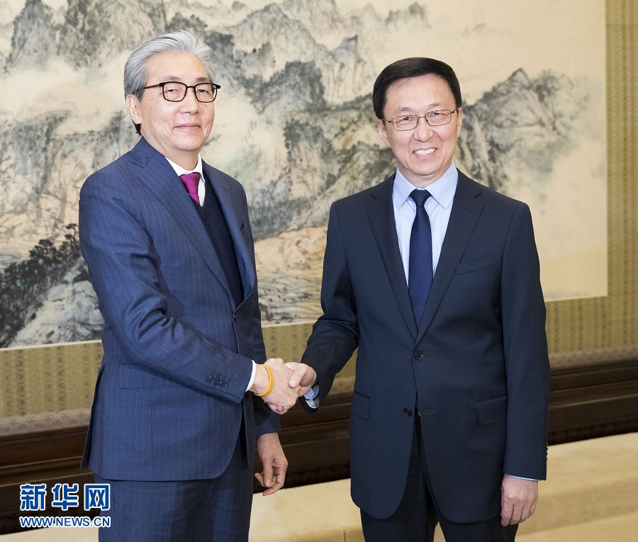 11月6日,中共中央政治局常委、國務(wù)院副總理韓正在北京中南海紫光閣會(huì)見泰國副總理頌奇?!⌒氯A社記者 黃敬文 攝