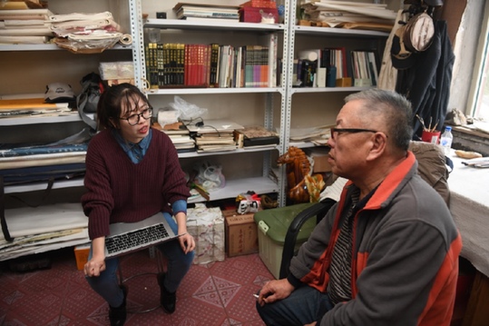 孟含琪(左)采訪“天眼之父”南仁東家人。