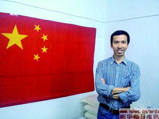 2015年3月空襲時(shí),劉萬利在中國(guó)駐也門使館地下室與國(guó)旗合影。劉萬利(國(guó)際部)