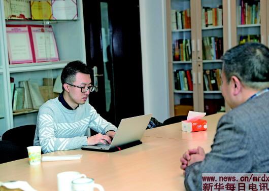 王若辰正在編輯同事田朝暉的扶貧故事。王若辰(新華每日電訊)
