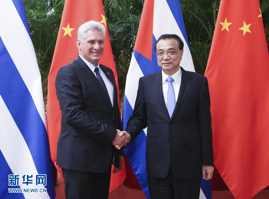 11月8日,國務(wù)院總理李克強在北京人民大會堂會見來華進(jìn)行國事訪問的古巴國務(wù)委員會主席兼部長會議主席迪亞斯-卡內(nèi)爾。 新華社記者姚大偉攝