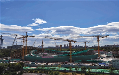 9月30日,北京冬奧會標志性建筑國家速滑館混凝土主體結構完成,“冰絲帶”已經(jīng)拔地而起,在北京奧林匹克公園露出了偉岸的身軀。圖/視覺中國
