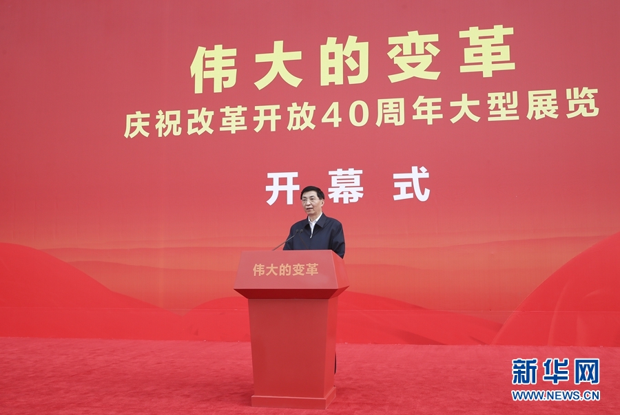新華社北京11月13日電 “偉大的變革——慶祝改革開放40周年大型展覽”開幕式13日上午在國(guó)家博物館舉行。中共中央政治局常委、中央書記處書記王滬寧發(fā)表講話并宣布展覽開幕。