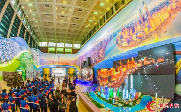 圖說:上海展區(qū)的視頻和沙盤展示著建設(shè)成就。新民晚報記者 孫中欽 攝