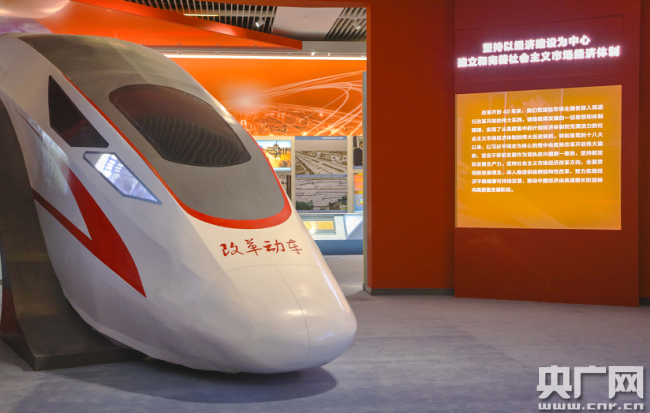 展館展示了我國(guó)建立和完善社會(huì)主義市場(chǎng)經(jīng)濟(jì)體制的歷程。(央廣網(wǎng)記者 荊宇琦 攝)
